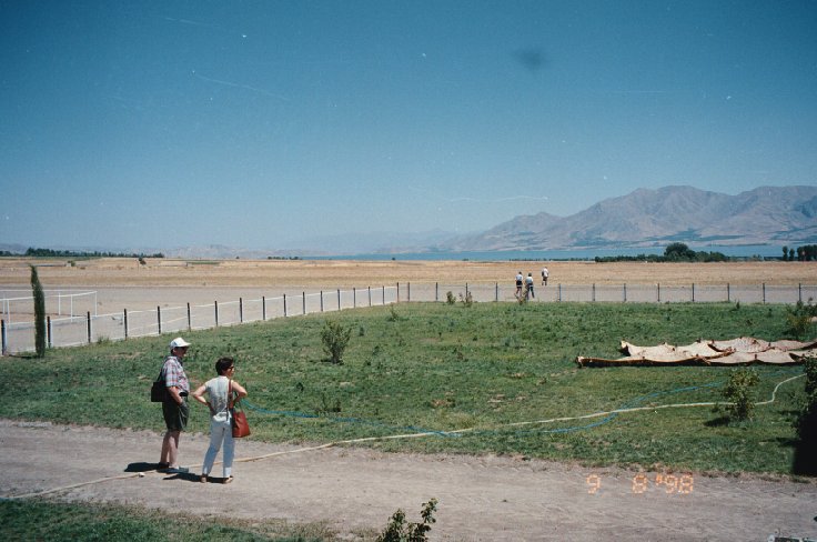 ELAZIG was the next stop on our way. The city surrounded by a dam lake. It is now on a peninsula. Just near the city there is a hill with an old town called HARPUT on it. This hill is almost 200 m higher than the city. This means that the the air pollution of the city is below the site, you will find a dust free, clean sky with no scattered light. This site is chosen for our experiments as well as for those of three Japanese groups: Dr. Hei and his team from Meisei University, Dr. Ichimoto and his team from Tokyo Observatory, and Dr. Ueno's team from Kyoto University. Also, we are in collaboration with Dr. V. Rusin and his team from Tatranska Lomnicka Observatory. The last site inspection was performed with him and with Dr. W. Livingston from NSO, Tucson. If you decide to observe the eclipse near the lake, you will find a place just near the water at the horse race track.